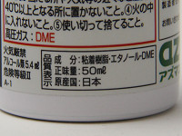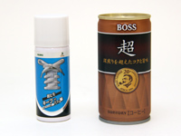 | 製品パッケージ。「靴ヒモをほどけにくくする」というコピーが付いている | スプレー自体はコンパクト。缶コーヒーよりも一回り小さい | 成分の欄を見ると、「粘着樹脂」と書かれている。これがヒモを固めるようだ |