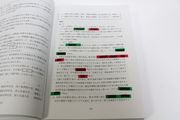 この付箋紙の利点は、1ページの中で赤と緑の付箋紙を自在に使い分けられるところだ。たとえば英単語を覚える際に、英単語に赤マーカーを記載して、訳語に緑マーカーを記載しているような場合でも、それぞれを隠すために別の色の付箋を貼ることができる。1つの文章の中に赤マーカーと緑マーカーが混在しているような状況でも有効だ。