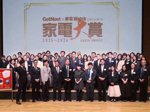 「家電 Watch」と、ワン・パブリッシングのアイテム情報誌「GetNavi」の共同開催による「家電大賞」の授賞式が、3月10日に開催された。今回で第11回目を迎えるこのアワードは、期間中に発売された家電のベスト オブ ベストを読者投票で決定するもの。授賞式には、受賞メーカーや家電の有識者を合わせて70名以上が一堂に会した。