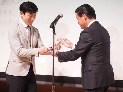 授賞式には三四郎さんがゲストで登場するサプライズも。受賞メーカーへのインタビューを行なったほか、グランプリを獲得したTOTO「ネオレスト LS-W」について説明を受けて、最新トイレの進化に驚いている様子だった。