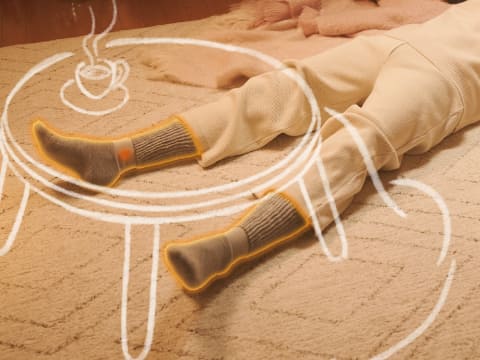 岡本(OKAMOTO)の人気商品「まるでこたつソックス」は、独自の温熱刺激設計と特殊保温素材により、かじかんだ足元も、まるでこたつに入っているように温かくするというアイテム。価格は、メンズが2,200円、レディースが1,980円。ソックスだけど締め付けはやさしく、長時間でもリラックスして履きやすいのもポイントだ。