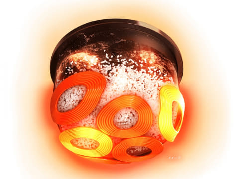 縦横無尽に複雑で激しい対流を生み出す「3DローテーションIH構造」を採用。これにより、お米を激しくかき混ぜながら炊き上げ、ふっくらとした粒立ちと甘みを引き出す。