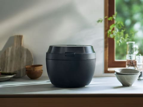 本体サイズは、約248×302×234mm(幅×奥行き×高さ)、重量は約6kg。炊飯容量は0.09~1L(0.5~5.5合)、炊飯時の消費電力は1,400W。本体カラーは、漆黒。
