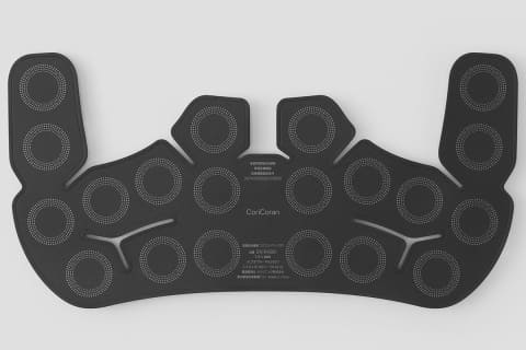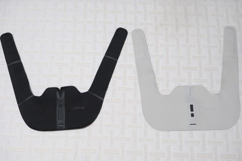 従来のコリコランワイドと新しいコリコランワイド3Dを並べてみると、デバイスの数だけでなく肩用アタッチメントの形も変更されていました。従来のワイドは前に垂らすストラップ部分がハの字のように広がっているのに対し、新しいワイド3Dは肩に対して垂直に近く、2本のストラップが平行に近くなっています。以前も外れやすくはなかったですが、より装着時のズレが減って、安定感が増したように思えます。
