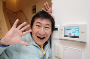 「SMART V2H」は、太陽光パネルや車の充電器、家庭の分電盤まで含めた複雑なシステム。しかし普段目にできる、というか見ておく必要があるのは壁に取り付けられたディスプレイだけ。見た目はインターホンと変わりないが、画面がタッチパネル式になっていて、色々な操作や設定ができる。