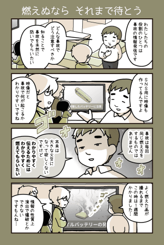 カデーニャカンパニー第354回:燃えぬなら それまで待とう たき りょうこ2025年9月3日 14:30ハードウェアスタートアップ企業、カデーニャカンパニー。広報の新人・原わかばには奇妙に見える事も、エンジニア達にはいつもの事。ハードウェアスタートアップあるある4コマ漫画。画像はクリックで拡大します。※この物語は事実に基づいたフィクションですたき りょうこ漫画家/ライター/イラストレーター 元SE。 エキレビ!にてイラストレビュー、学研『はじめてのプログラミング』漫画担当など。 Twitter: @ryoko_t3
