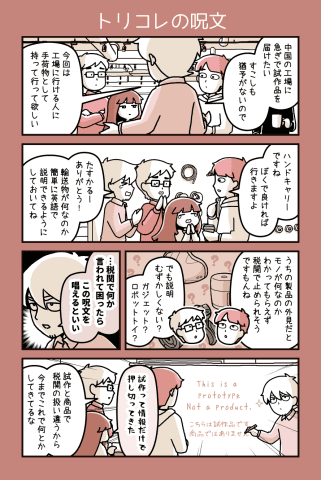 カデーニャカンパニー第377回:トリコレの呪文 たき りょうこ2026年2月25日 11:05ハードウェアスタートアップ企業、カデーニャカンパニー。広報の新人・原わかばには奇妙に見える事も、エンジニア達にはいつもの事。ハードウェアスタートアップあるある4コマ漫画。画像はクリックで拡大します。※この物語は事実に基づいたフィクションですたき りょうこ漫画家/ライター/イラストレーター 元SE。 エキレビ!にてイラストレビュー、学研『はじめてのプログラミング』漫画担当など。 Twitter: @ryoko_t3