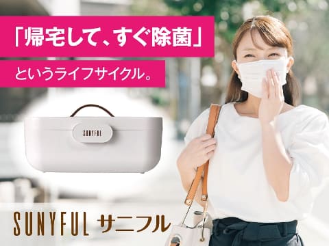本体内部のUVCランプにより、マスク、ハンカチ、手袋、メガネ、インナーウェアなどの除菌ができるボックス。紫外線を利用して除菌することから、「おひさまパワーで除菌」をキーワードに、Sunny+Beautifulを組合せた造語から、Sunyfulと命名したとする。
