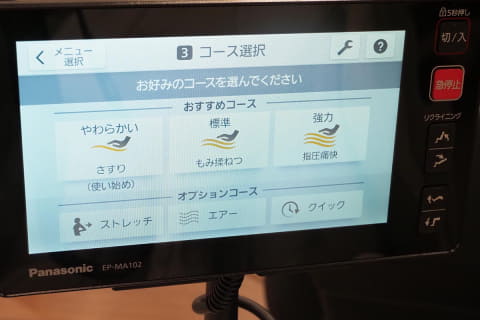 スマホの長時間使用などもあって姿勢の悪さを感じている筆者が、家でできる究極の贅沢ともいえるこのマッサージチェアに座って体験してみた。全身マッサージのコースを選ぶと、肩や足の位置を計測して、自分の体型に合った場所に調整しながらマッサージを開始。
