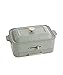 本体サイズは約375×235×175mm(幅×奥行き×高さ)。重さは約3kg(平⾯プレート、フタ使⽤時)。定格消費電力は1,200W。温度調節は保温(65℃)〜250℃。3種のプレートのほか、マグネット式脱着電源コード(約1.8m)、トングが付属する。カラーはグレージュ、グリーンの2色展開。