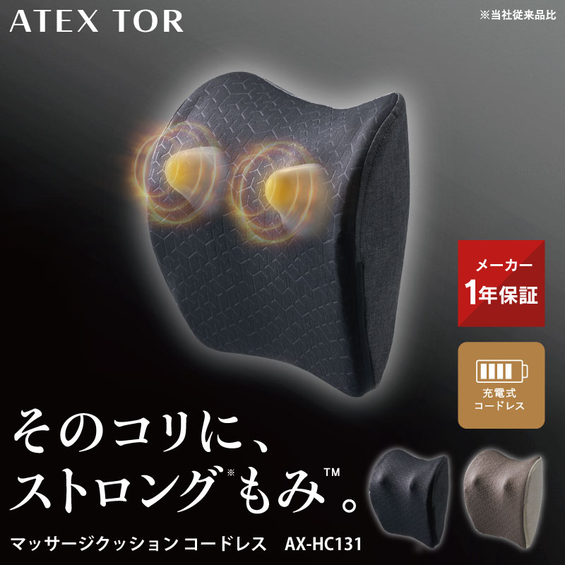アテックスは、アテックストールシリーズから、強めのもみ心地を実現した「マッサージクッション コードレス AX-HC131」を、3月30日に発売する。価格は12,100円。