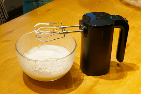 同様にハンドミキサーも少し大きさが気になったが、それを上回るほどに気に入ったのは本体が自立する点。お菓子作りでハンドミキサーを使うとき、泡立ての途中で材料を追加するといった工程はよくある。手持ちのハンドミキサーは自立しないため、不安定ながらもボウルに立てかけておくしかなかった。それがしっかり自立することで、落ち着いて作業を続けることができるのはうれしい。