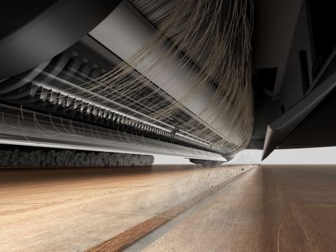 ロボット掃除機本体は、業界最強クラスの19,000Paの吸引力を備え、小さなゴミまで吸い取る。加えて、壁際を掃除する際には、自動的にモップが壁際まで伸びるモップエクステンド機能を搭載。掃除の際の死角をなくし徹底的に隙間を清掃する。
