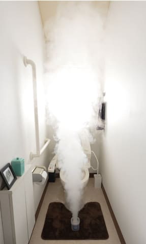 本体に水を入れ、トイレ室内に置くだけで使用できるくん煙タイプの除菌・消臭剤。銀イオンの煙がトイレの隅々まで行き渡り、壁やタンク裏、換気扇など手が届きにくい場所に潜むニオイ菌をまとめて除菌する。これにより、新たなニオイの発生を防ぎ、約1カ月間快適な空間をキープするという。