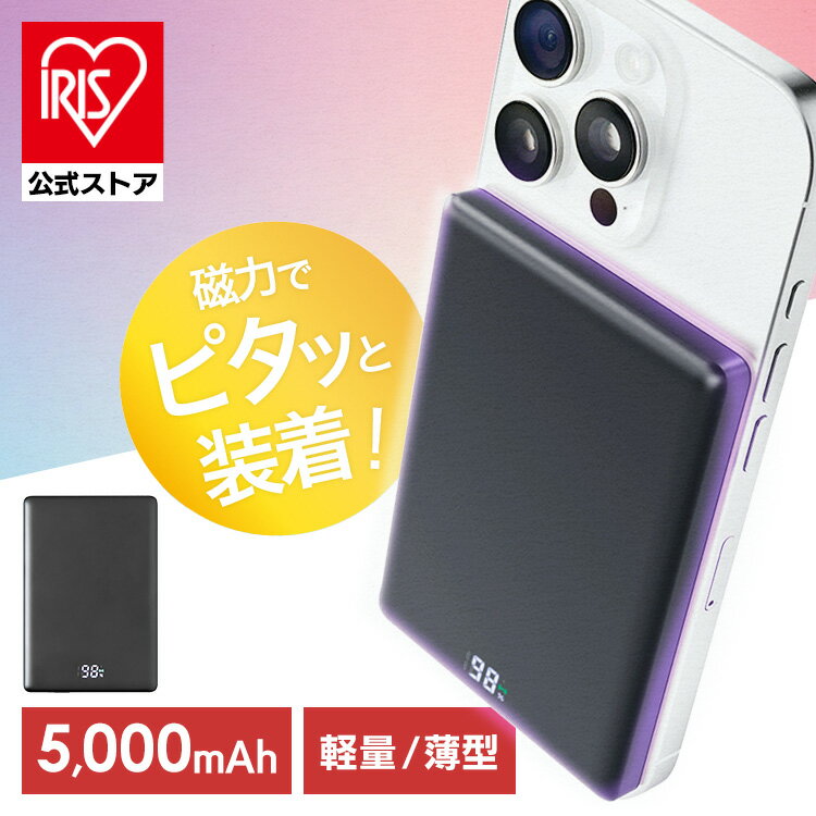 アイリスオーヤマ、マグネット式ワイヤレス充電対応モバイルバッテリー