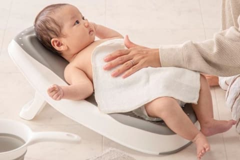 さらに、赤ちゃんの滑り落ちを防ぐ突起が施されているため、安心して寝かせることが可能。両手が自由になることで、赤ちゃんのケアだけでなく、自身の洗身もスムーズに行なえるという利便性もある。