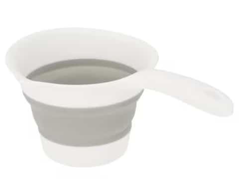 また、「たためる風呂桶」「たためる手桶」の2アイテムもラインナップ。価格は風呂桶が599円、手桶が399円。ベビーバスと同様に、省スペース性と携帯性を兼ね備えている。