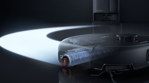 ステーションにはゴミ収集、モップ洗浄、温風乾燥、洗剤の自動投入まで自動で行なうセルフクリーニング機能を搭載。新たにゴミ収集時に、ロボット掃除機本体の回転ブラシが左右に分割され、中央部から毛を自動吸引する「DuoSpiral ブラシ」を初採用し、吸引した髪も絡まずに丸ごとステーションに収集できる。