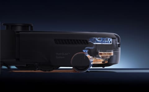 約29cmの幅広なローラーモップを採用した「HydroJet システム」により、水拭き掃除もしっかりできるロボット掃除機。水拭き掃除中にモップの汚れを本体内で常に洗浄し、拭き上げた汚れを引きずることなくいつでも清潔なモップで掃除を行なう。