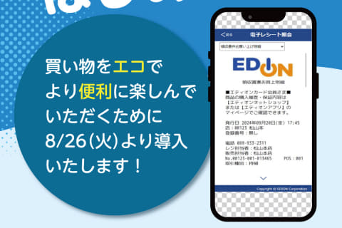 エディオンは、8月26日からエディオン全店で「電子レシート」サービスを開始する。これまで紙で提供していたレシートを電子化することで、顧客の利便性向上と環境負荷の軽減を目指すという。