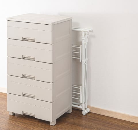 使用後はスリムに折りたためるため、省スペースに収納でき、生活空間をすっきりと見せられる。都市部のマンションなど限られた物干しスペースでの使用はもちろん、子育て世帯から二人暮らし、単身赴任や学生の一人暮らしまで幅広いライフスタイルに対応する。