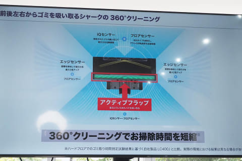 この「360°クリーニング」に加え、独自の3つのセンサーで取り残しを防ぎ、同社基準では「1.5kg以下のコードレス掃除機の中で最高クラスの掃除性能」とアピールしている。
