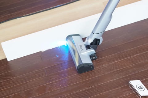 ゴミの視認性をあげるライトには、青色LEDを採用。フローリングなどで目立たないゴミも立体的に見えやすくした。