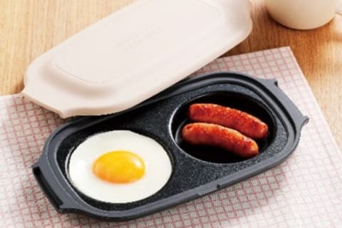 一方「ダブルプレート」は円形の小型プレートを2つ並べた設計で、朝食やお弁当のおかずを同時に2品調理できるため、忙しい朝の時短調理に便利とする。さらに、今川焼やホットケーキといったおやつ作りにも応用できる。