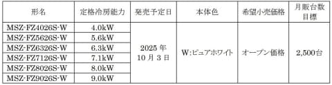 三菱電機は、ルームエアコン「霧ヶ峰」の新製品として、FZ/Z/FD/ZDシリーズ全30機種を10月3日に発売する。いずれも価格はオープン。