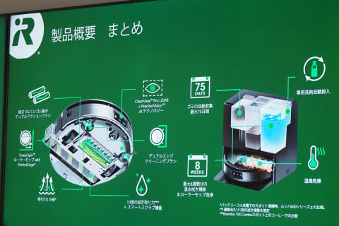 4月にラインナップを一新して6機種を発売したルンバ。これらに加え、新たに最高レベルの吸引力とルンバ初となるローラー式の水拭きモップ、モップ自動洗浄機能も備えた究極の“オールインワン ルンバ”が登場。この新製品で全ラインナップがそろう形になる。