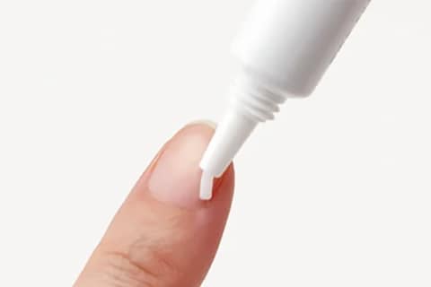 先細形状のチューブは患部にピンポイントで塗布しやすく、塗った直後でも指先を使える仕様。こっくりとしたテクスチャーのクリームがしっかり密着する一方で、べたつきにくい使用感を実現している。