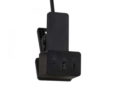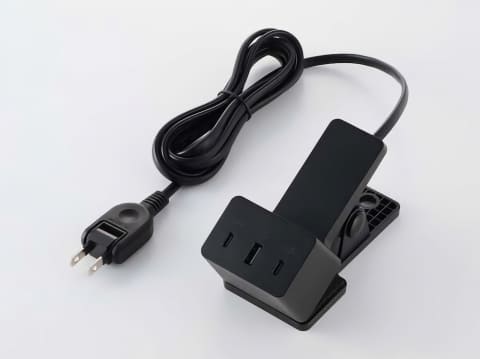 充電器を常設できないテーブルなどに一時的に設置できるクリップ機構を備える。約15~35mmの厚さの板に挟め、リビングでのテレワークや宿題の際ダイニングテーブルに、また就寝時にベッドの枠に挟んで手元で機器を充電できる。