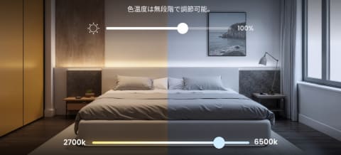Matter対応で、HomeKit/Google Home/Alexaなど複数のプラットフォームをまたいで、iPhoneやSiriなどApple製品のホームアプリから操作可能。音声操作、明るさと色温度の自動操作、その他Matterデバイスと連動してシーンを実行するといった多彩な機能を、たったひとつのアプリからまとめて管理できるという。