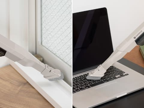 本体はパイプを外すと、ハンディクリーナーとしても使用可能。付属の2in1すき間ノズルを使えば、サッシなどの掃除がしやすい。