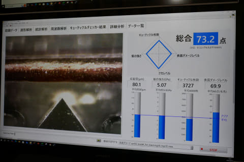 キューティクルチェッカーは、1本の毛髪からキューティクルの枚数、表面ダメージレベル、髪の強さ、毛髪径の4項目を測定可能。結果は点数でも表示され、毛髪に詳しくない人でも、髪の状態がわかりやすくなっている。製品開発のほかに、一般向けに体験してもらい、髪のケアを促す機会づくりにも活用したいという。