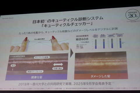 ナノイーの発生量の増加など、進化を続けてきたナノケアシリーズだが、同時に毛髪を評価する技術も進化している。その最新技術として今回公開されたのが、日本初のキューティクル診断システム「キューティクルチェッカー」だ。