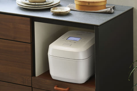 また、炊飯中に蒸気がほとんど出ない「蒸気カット」機能を備えるため、置き場所に困らないのも特徴。シンプルなデザインは暮らしに調和するとしている。