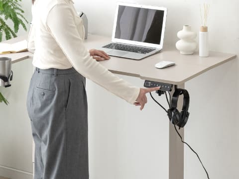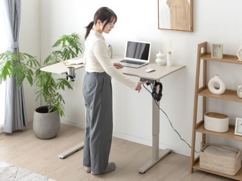 メモリ機能を搭載しており、最大4つの高さをあらかじめ登録することで、立ち姿勢・座り姿勢に応じた高さにワンタッチで昇降可能。