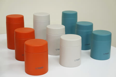 「真空断熱フードジャー」は400ml、500ml、750mlの3サイズをラインナップ。400mlの「MKL-W040」はスープや汁物向け、500mlの「MKL-W050」は具材の大きなスープやお粥に、750mlの「MKL-W075」は麺類やカレー、シチューに適しているという。カラーはバーミリオン、イーグレットホワイト、クラウドブルーの3色展開だ。