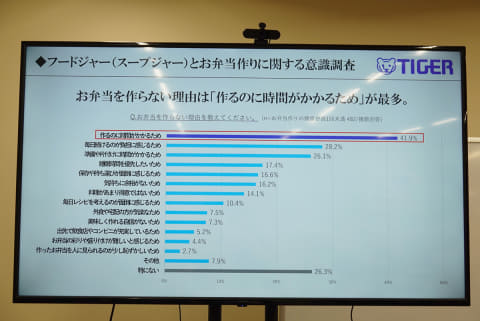 実際にお弁当ユーザーの半数が使用しているフードジャーだが、人気の理由は「汁物が入れられる」ことに加え、「一品で成立するため」など、用意にかける時間が少なくて済む点にある。
