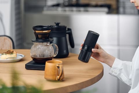 伸縮式のカップを備え、スイッチを押すだけでコーヒー豆を手軽に挽ける電動グラインダー。軽量でコンパクトな設計のため、キャンプなど外出先でもコーヒーを楽しめる。