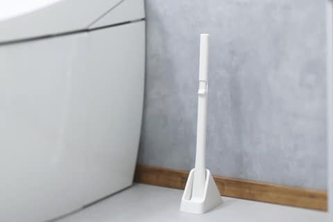 角度がついたL字カーブネックにより、便器のフチ裏にも簡単に届き、隅々まで清掃可能。使用後は付属のケースに収納でき、従来のトイレブラシに比べ省スペースで清潔に保管可能だ。柄とケースには抗菌加工が施されており、衛生面にも配慮されている。
