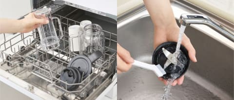 カップは軽量で丈夫なトライタン製。カップやふたは食器洗い乾燥機に対応し、カッター台は取り外して手入れできる。ふたは確実に閉めないと回転しないロック構造で安全性にも配慮した。