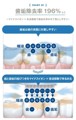 イオンの力と音波振動で汚れにアプローチする電動歯ブラシ