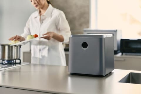 投入食材の乾燥状態を検知して無駄な運転を抑えるオートモードを備える。乾燥後の生ゴミは堆肥として資源循環に活用でき、雑菌の繁殖や腐敗臭の発生も抑えられるという。