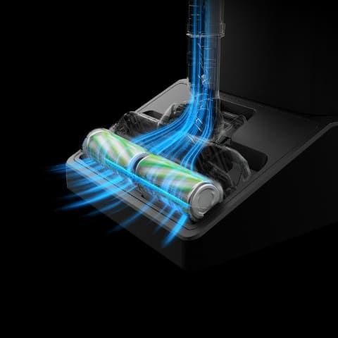 また、本体カップを空気の流れで自動でお手入れする「オートエアー洗浄」や、回転ブラシを自動でお手入れする「オートヘッドクリーニング」により、お手入れ頻度も大幅に軽減した。本体をダストステーションに戻すと、回転ブラシが作動して絡んだ毛を遠心力で緩ませ、緩ませた毛をスタンドに内蔵されたカッターでカット。ヘッドの汚れと一緒にダストステーション内に吸引する。ゴミ捨ては、抗菌・消臭機能付き「ダブル清潔紙パック」により、約3カ月に1回で済むとする。