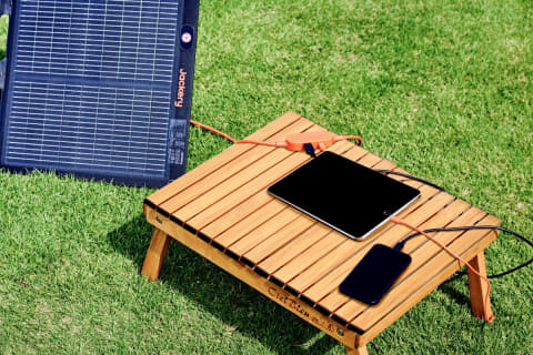 出力ポートはUSB Type-A(5V/2.4A)とUSB Type-C(5V/3A)を1口ずつ搭載。同社のポータブル電源全シリーズに対応し、最大100Wで安定充電可能。複数枚のソーラーパネルを接続して利用すると、発電力がさらにアップする。