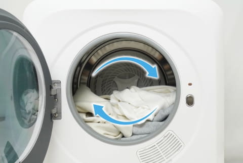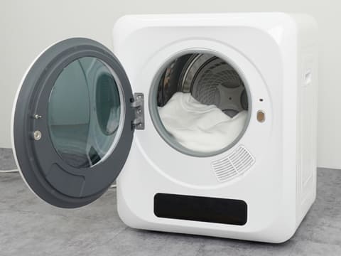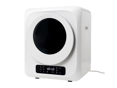 設置工事不要で手軽に使えるコンパクトな衣類乾燥機。ドラム式を採用しているため、ドラムが回転して衣類ほぐし、ムラなく均一に乾かすことが可能。乾きにくいパーカーや翌日着たい服もスピーディーに乾かせるという。
