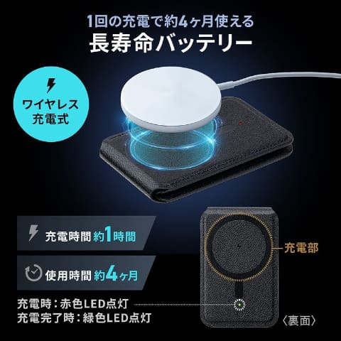 バッテリーはリチウムイオン電池を内蔵し、ワイヤレス充電に対応。充電時間は約1時間。満充電で最大約4カ月使用できる。