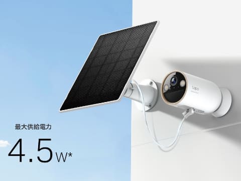上記の防犯カメラ「Tapo C400」と専用ソーラーパネル「Tapo A201C」とのセットモデルが、ソーラー給電セキュリティカメラキット「Tapo C400 KIT」。